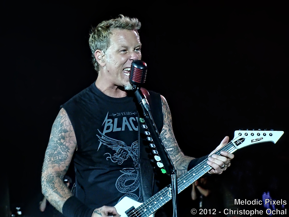 Metallica at Werchter boutique on the 28th of May 2012. They played there together with Ghost, Gojira, Channel Zero, Mastodon & Soundgarden. Taken with a compact Camera (Sony DSC-H10).